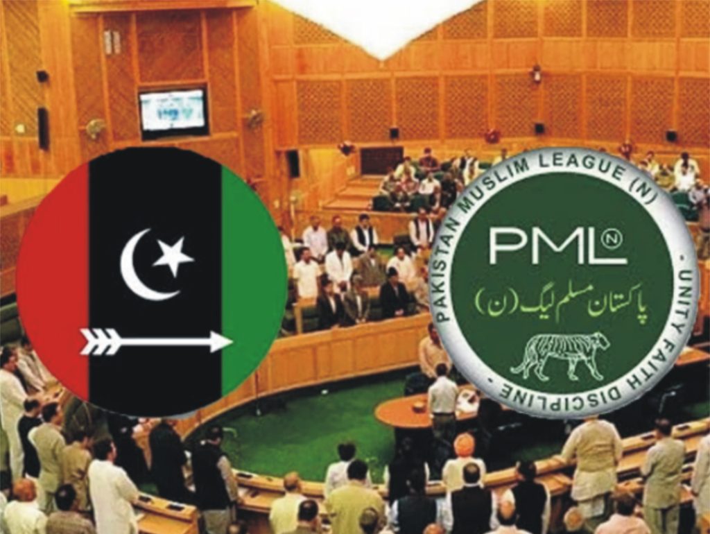 آزاد کشمیر حکومت کی تبدیلی سے متعلق مسلم لیگ ن کا اہم اجلاس طلب کرلیا گیا جب کہ وزیرِ اعظم شہباز شریف کی جانب سے آزاد کشمیر کے متعلق قائم وفاقی وزراء پر مشتمل سیاسی رابطہ کمیٹی کا اہم اجلاس آج منعقد ہوگا۔ذرائع کے مطابق سیاسی رابطہ کمیٹی کا اجلاس آج وزارتِ منصوبہ بندی میں ہوگا، اجلاس میں وفاقی وزیر احسن اقبال، وزیرِ اعظم کے سیاسی مشیر رانا ثناءاللہ، اور وزیرِ امورِ کشمیر انجینئر امیر مقام شریک ہوں گے۔مسلم لیگ ن آزاد کشمیر کے صدر شاہ غلام قادر آزاد کشمیر کی پارلیمانی پارٹی کی قیادت کریں گے، آزاد کشمیر کی پارلیمانی پارٹی سمیت مرکزی عہدیداران بھی اجلاس میں شریک ہوں گے۔ن لیگ آزاد کشمیر کے سیکرٹری جنرل طارق فاروق ، سینئر نائب صدر مشتاق منہاس اور بیرسٹر افتخار گیلانی سمیت سینئر قیادت کی شرکت متوقع ہے۔چیئرمین رابطہ بورڈ سردار طارق بھی اجلاس میں شریک ہونگے، سیاسی رابطہ کمیٹی آزاد کشمیر کی پارلیمانی پارٹی کو پیپلز پارٹی کے ساتھ طے پانے والے اتحاد کے فارمولے پر اعتماد میں لے گی۔مسلم لیگ ن نے گزشتہ روز پیپلز پارٹی کو وزارتِ عظمیٰ کے لیے ووٹ دینے کی یقین دہانی کرائی تھی، سیاسی رابطہ کمیٹی نے گزشتہ روز صدر آصف علی زرداری سے ملاقات میں پیپلز پارٹی کو ووٹ دینے کا حتمی فیصلہ کیا تھا۔ذرائع نے کہا کہ مسلم لیگ ن آزاد کشمیر میں ممکنہ نئی حکومت سازی کا حصہ نہیں بنے گی، مسلم لیگ ن آزاد کشمیر کی جانب سے آئندہ کی سیاسی حکمتِ عملی پر بھی غور کیا جائے گا، سیاسی رابطہ کمیٹی آزاد کشمیر کی قیادت سے آئندہ کی سیاسی حکمتِ عملی کے حوالے سے تجاویز حاصل کرے گی۔کمیٹی وزیرِ اعظم شہباز شریف کو وطن واپسی پر تفصیلی بریفنگ پیش کرے گی۔