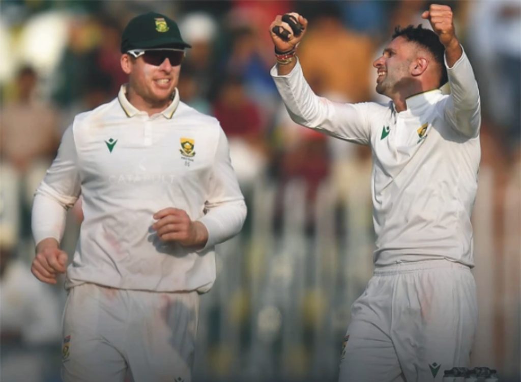جنوبی افریقی اسپنر کیشو مہاراج نے 7 شکار کرکے پاکستان ٹیم کو بڑا اسکور بنانے سے روک دیا۔دوسرے روز 259 رنز 5 کھلاڑی آؤٹ پر کھیل کا آغاز ہوا تو کچھ دیر مزاحمت کے بعد سلمان آغا 45 رنز بناکر مہاراج کی گیند پر ایل بی ڈبلیو آؤٹ ہوگئے۔سعود شکیل بھی 66 رنز پر مہاراج […]