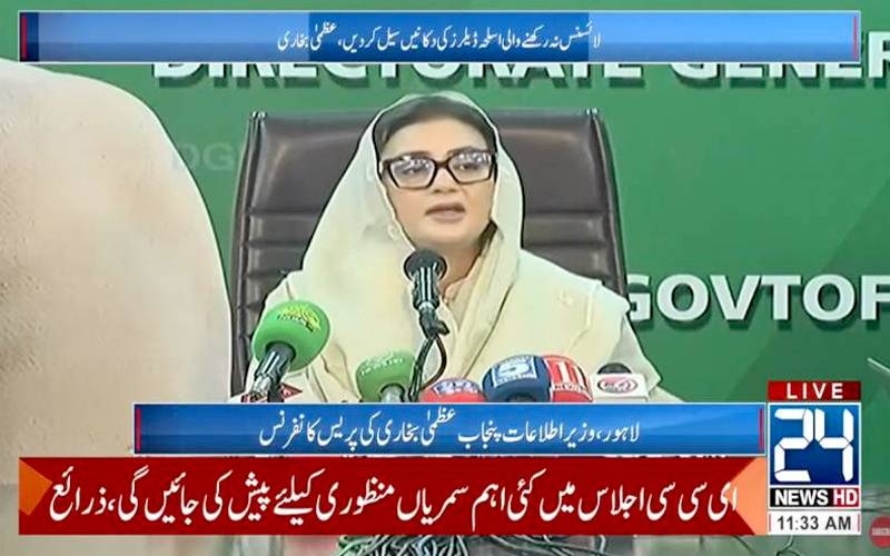 مذہبی جماعت اور غیر قانونی اسلحہ پر زیرو ٹالرینس کی پالیسی نافذ:عظمیٰ بخاری